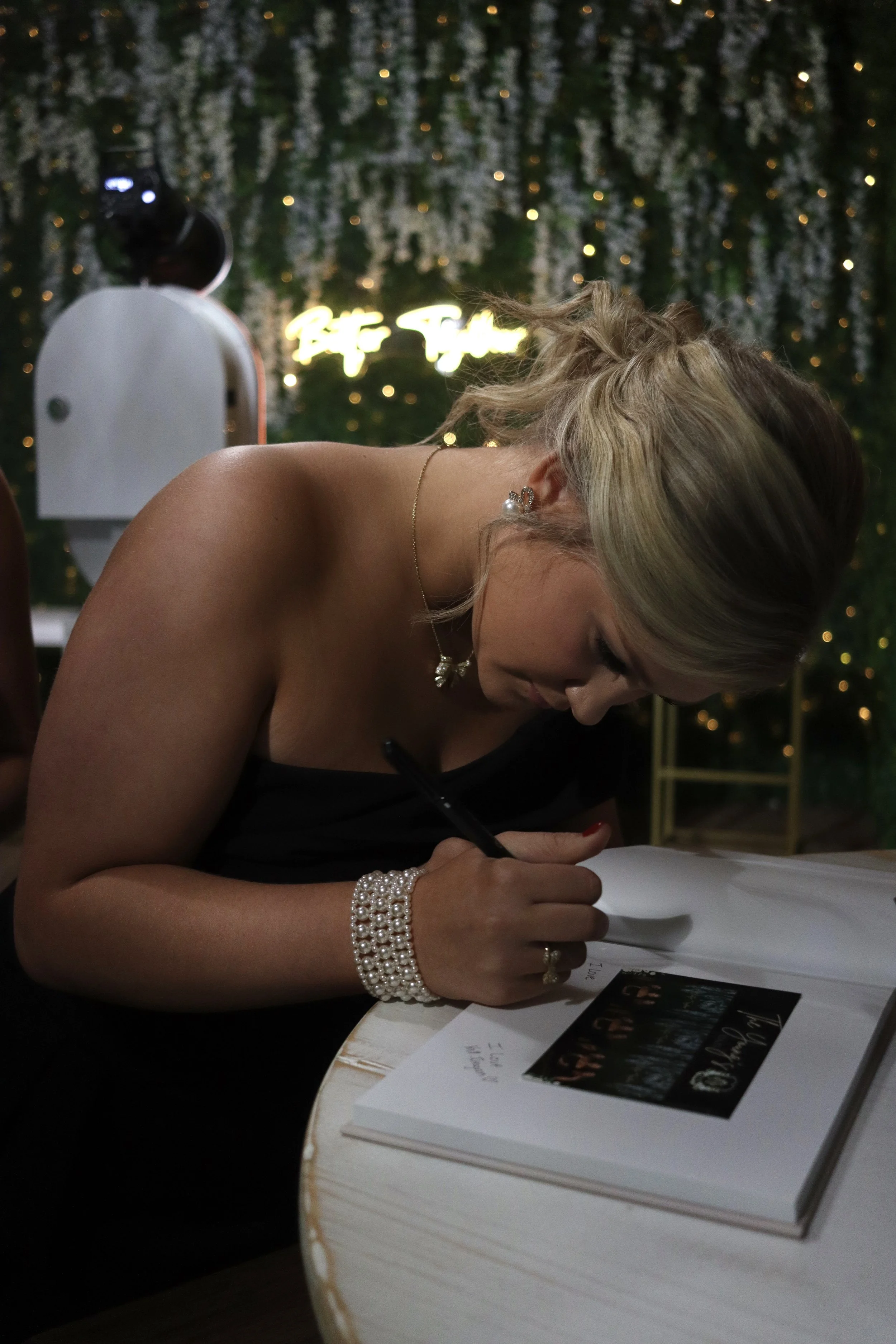 Our glam booth features a sleek black-and-white filter, skin-smoothing beauty edits, and studio-quality lighting.
